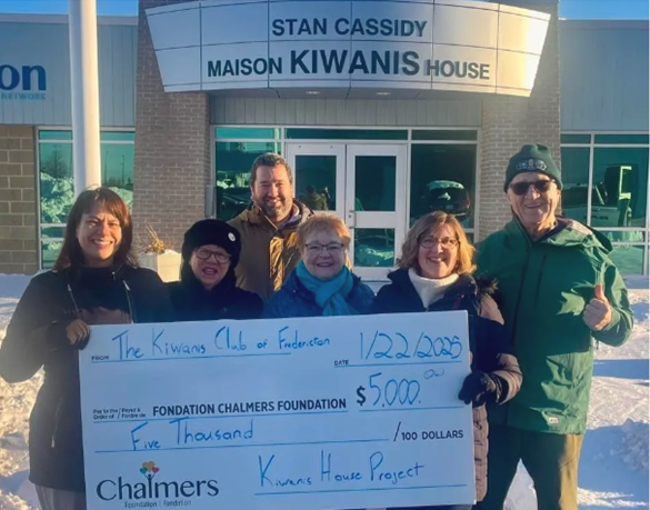 members of the Kiwanis Club of Fredericton presented a cheque for $5000.00 in support of the Chalmers Foundation and Kiwanis House, a “home” away from home”, providing out-of-town famillies with a safe and welcoming space to stay together while a loved one rehabs at the Stan Cassidy Centre for Rehabilitation. This money will support accessibility upgrades to the House