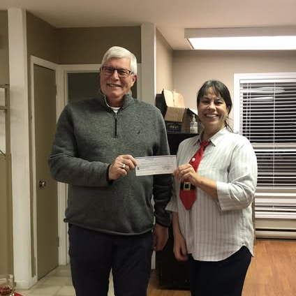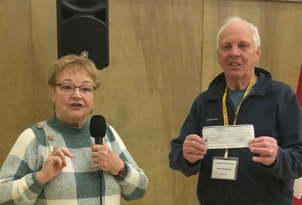 Murielle Lordon presented a cheque to Gene Anderson of the Golden Club for their invaluable support of our Christmas tree sale!